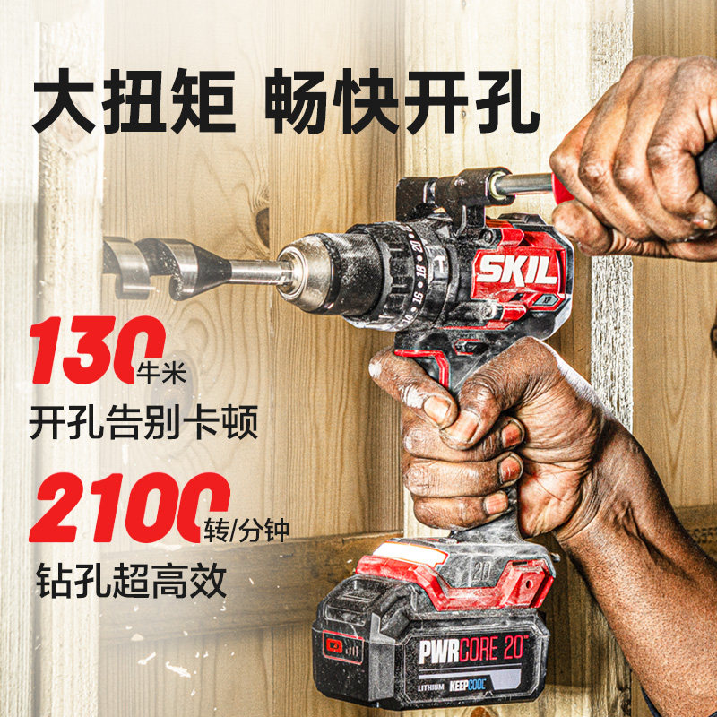 天猫SKIL无刷锂电冲击钻电钻130牛米无刷手持冰钓手枪钻充电式HD6271