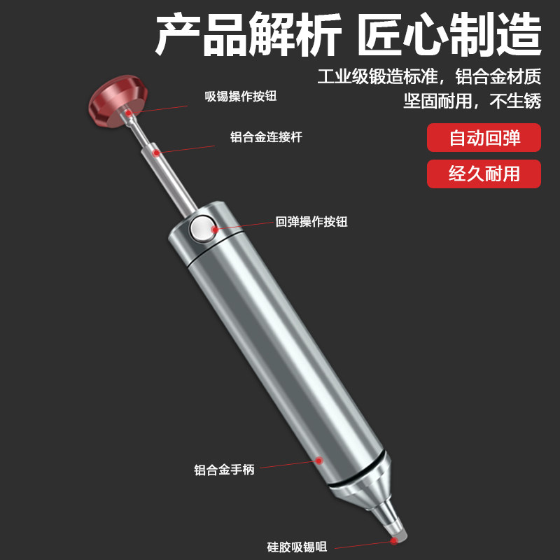 淘金卡思全铝吸锡器加大加长强力吸锡枪 吸锡泵烙铁焊锡清除锡渣用