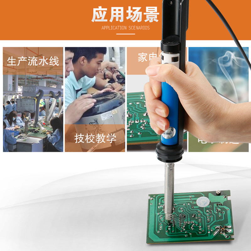 广州黄花吸锡器845是一款电热两用烙铁式吸锡泵,集加热与吸锡功能于一体,专为电子维修、电路板焊接与拆焊设计。其采用高效发热元件,升温迅速,控温稳定,可快速熔化焊锡,配合手动活塞式吸锡结构,轻松吸除多余焊点,操作简便高效。产品具备双重功能:既可作为普通烙铁使用,又能实现精准吸锡,适用于多种电子元件的拆卸与维修。外壳采用耐高温材料,安全可靠,手柄设计符合人体工学,长时间使用不易疲劳。845型吸锡器结构紧凑、性能稳定,是电子爱好者及专业维修人员的理想工具,广泛应用于家电、通信设备及精密电子维修领域。