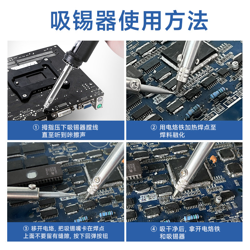 白光吸锡器吸附残渣手动工具锡枪清除锡残渣吸取器拆焊吸取器