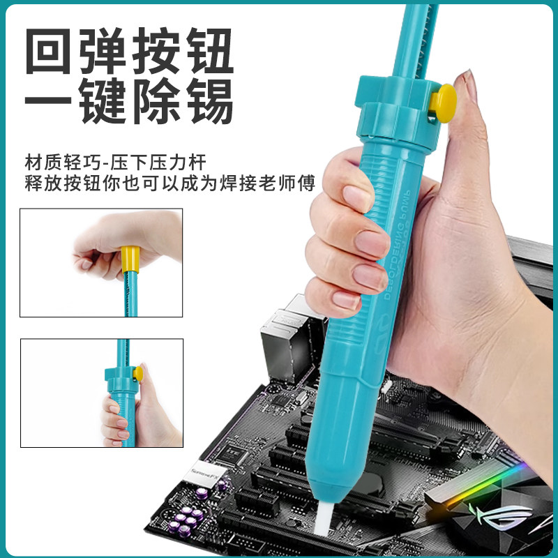 淘蓝色吸锡器手动强力拆焊吸锡枪加长大号吸锡泵电烙铁除锡焊接工具