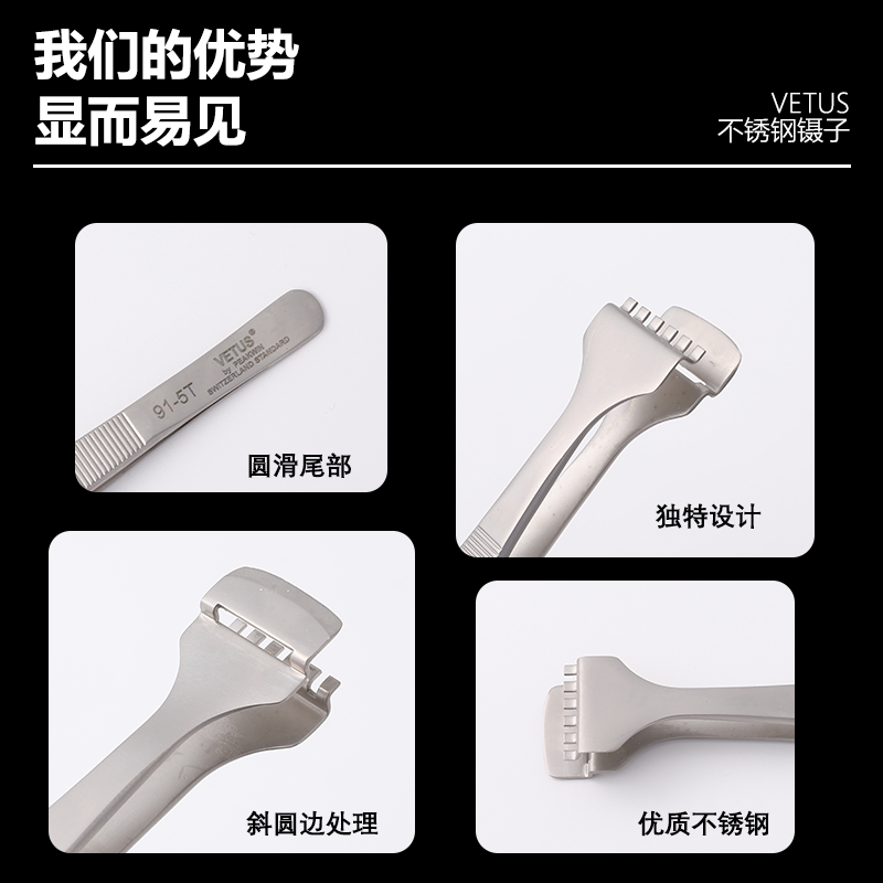 VETUS镊子燕窝拔毛不锈钢去黑头精密尖头弯头美容美甲镊子夹套装