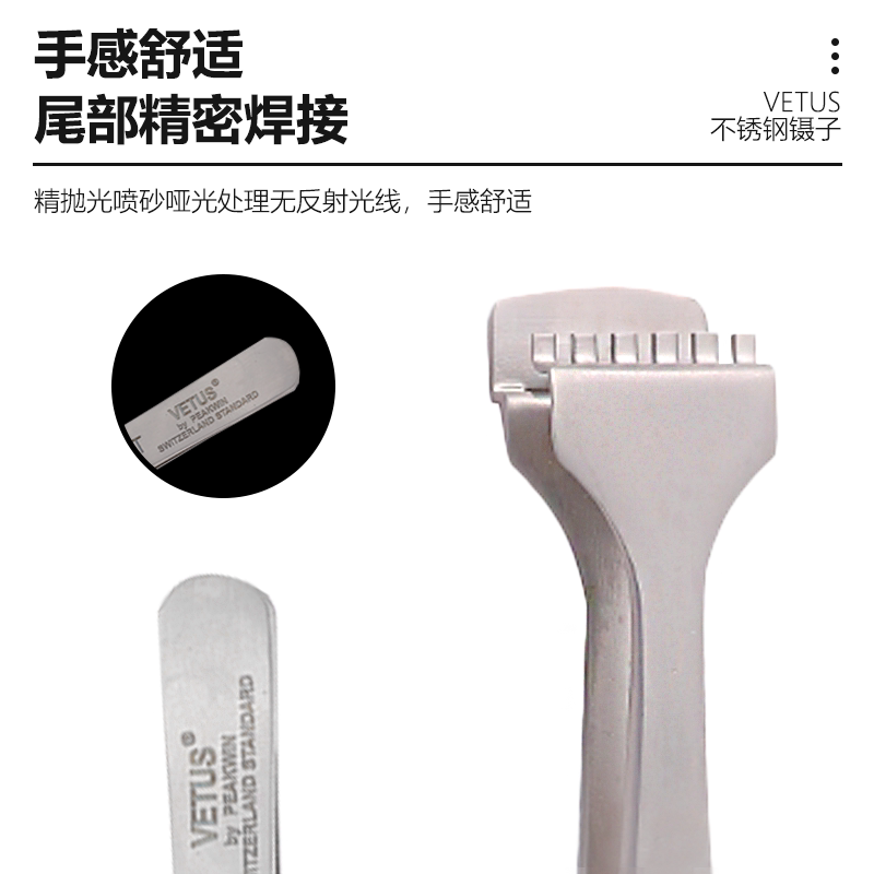 VETUS镊子高精密不锈钢尖头镊子专业美睫睫毛种植眉夹拔黑头列子
