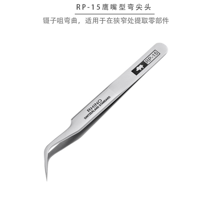 日本RHINO进口防磁高精密硬不锈钢维修钟表美容特尖弯RP镊子,专为精密操作设计,采用优质防磁不锈钢材质,具备出色的抗磁性与耐腐蚀性,确保在精密仪器、钟表维修及美容等精细作业中精准无误。其特尖弯头设计,提供卓越的夹持力与操作灵活性,可轻松处理微小零件。镊子经过精密研磨,尖端闭合严密,表面光滑无毛刺,手感舒适,长时间使用不易疲劳。适用于钟表匠、电子维修师及美容专业人士,是追求极致精度与品质的得力工具。RHINO品牌以匠心工艺著称,每一支镊子均体现日本制造的严谨与卓越。