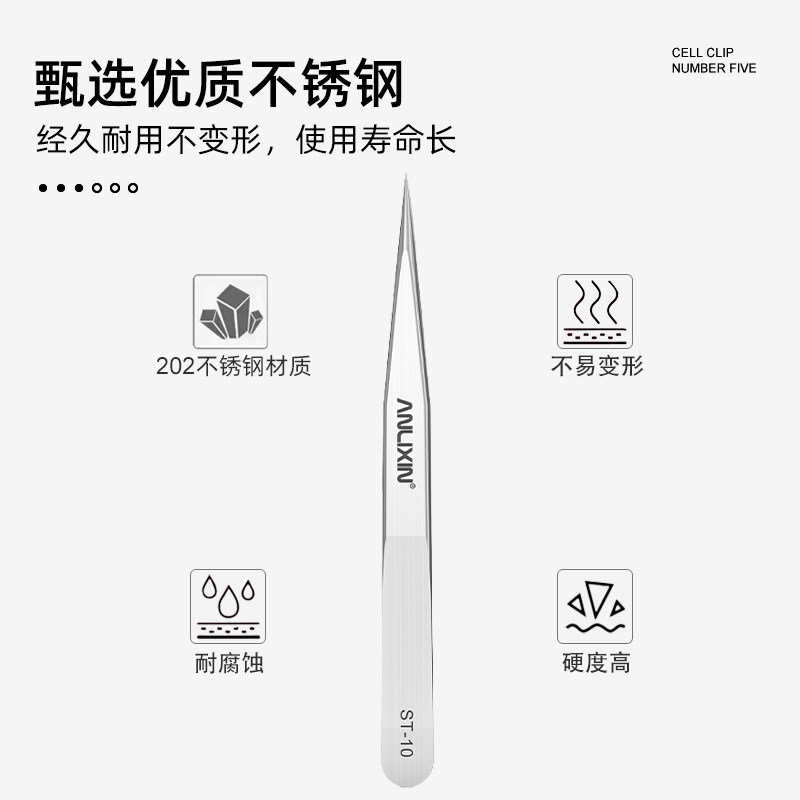 不锈钢镊子ST-10是一款多功能精密工具,采用优质不锈钢材质制成,具有耐腐蚀、不易生锈、坚固耐用的特点。其尖头直头设计,夹持精准,适用于多种精细操作场景。在裁缝领域,可轻松穿线、夹取细小针脚;在燕窝加工中,能高效挑除细毛杂质;同时广泛应用于手机维修、电子装配等精密作业,夹取微小零件毫不费力。ST-10镊子手感舒适,防滑设计提升操作稳定性,是手工艺人、维修技师及家庭用户的理想选择。无论是专业用途还是日常使用,都能提供精准、可靠的夹持体验,兼具实用性与耐用性。