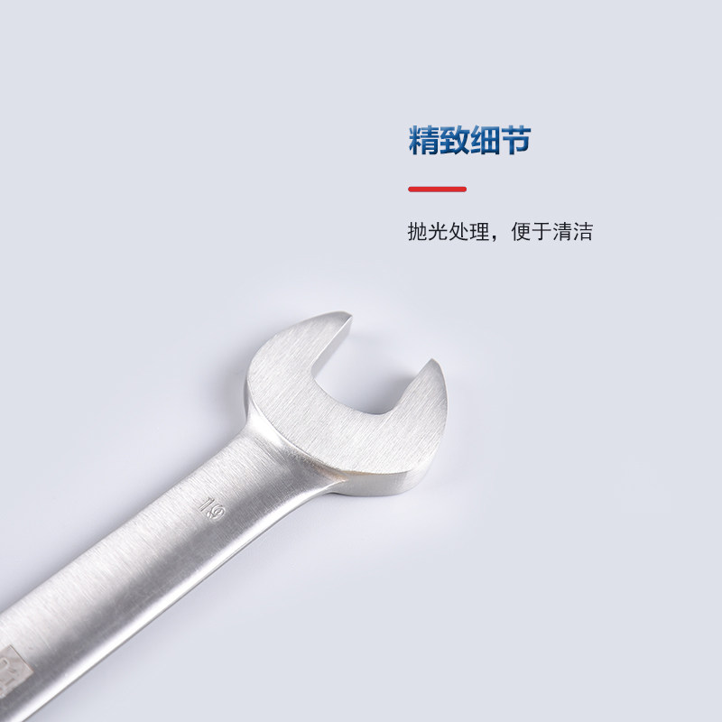 316不锈钢双开口扳手采用高品质316不锈钢材质,具备卓越的防锈与耐腐蚀性能,适用于潮湿、高盐等恶劣环境,广泛应用于海运、航空及食品加工行业。其双呆口设计提供稳定的咬合力,确保在高扭矩作业中不易打滑。同时,扳手经特殊工艺处理,兼具良好的耐温性能,可在较宽温度范围内稳定工作。部分高端型号融入钛合金元素,进一步提升强度与轻量化表现。结构坚固、表面光滑无毛刺,符合食品级安全标准,易于清洁,避免污染。是船舶维修、航空装配及食品机械维护的理想工具,兼顾耐用性、安全性与操作便捷性。