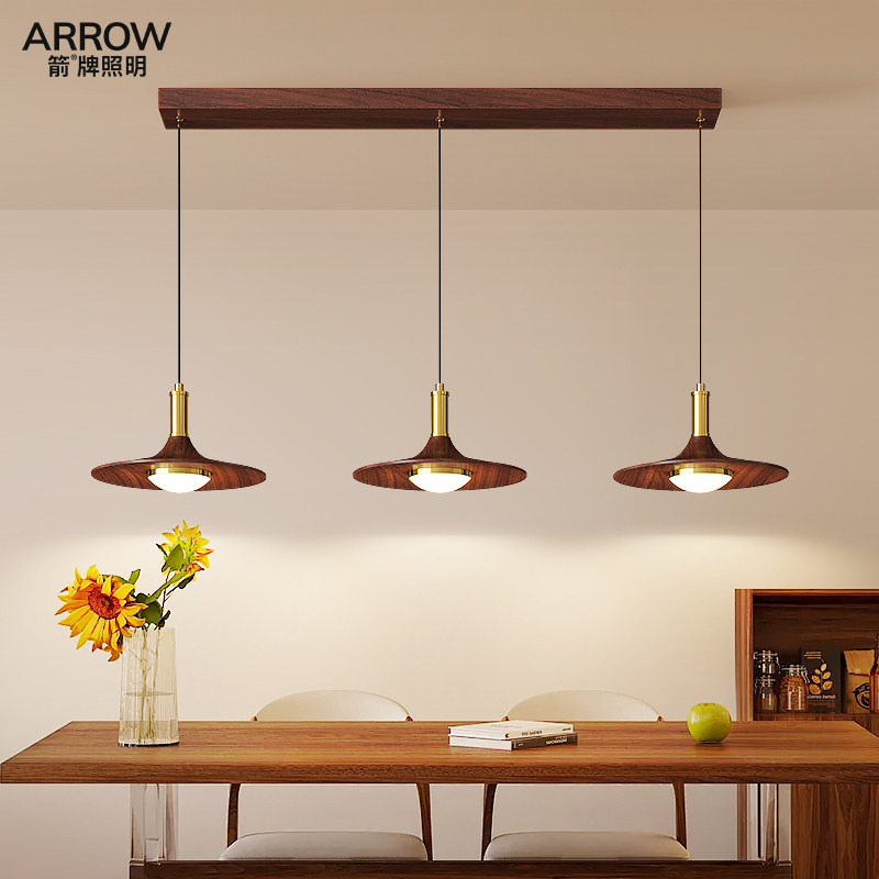 天猫箭牌中古风餐厅吊灯复古飞碟灯胡桃木吧台卧茶室饭厅餐桌三头灯具