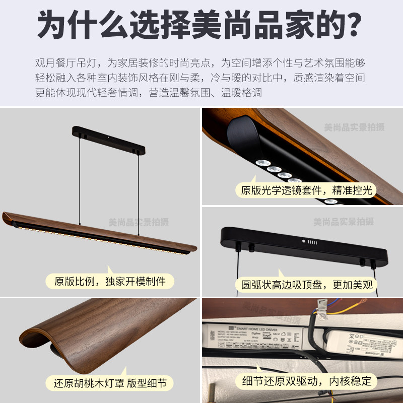 观月餐厅吊灯原版1:1复刻宋式美学茶室岛台吧台餐桌一字长条灯,以宋代极简雅韵为灵感,采用传统榫卯结构与天然木艺结合现代工艺,完美还原宋代文人空间的清雅意境。灯体线条流畅,比例考究,搭配温润原木与哑光金属,营造出静谧悠远的东方氛围。灯光柔和均匀,适用于茶室、吧台、长餐桌或岛台上方,既满足功能性照明,又成为空间中的艺术焦点。1:1精准复刻确保细节还原,将宋人“格物致知”的美学精神融入当代生活,为现代家居注入诗意与禅意,是追求东方美学的理想之选。