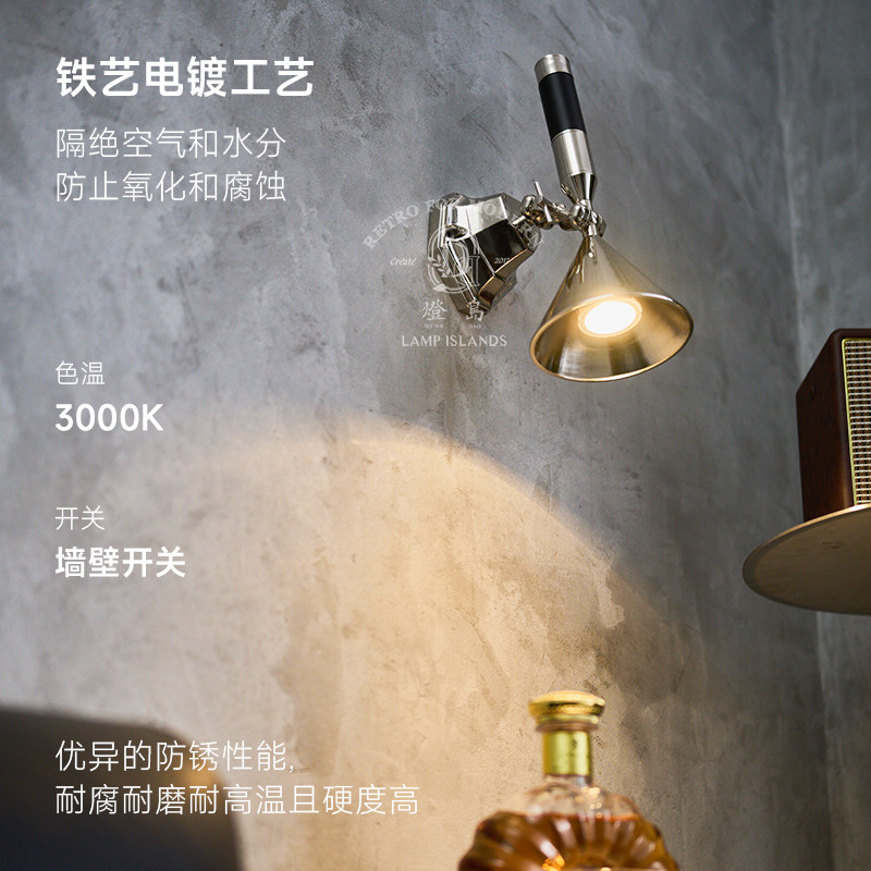 淘宝灯岛 中古工业风复古可调壁灯咖啡馆氛围个性玄关客厅卧室床头灯