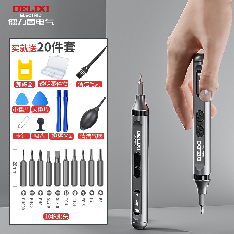 德力西电动螺丝刀套装多功能迷你手机维修小型锂电充电式家用起子