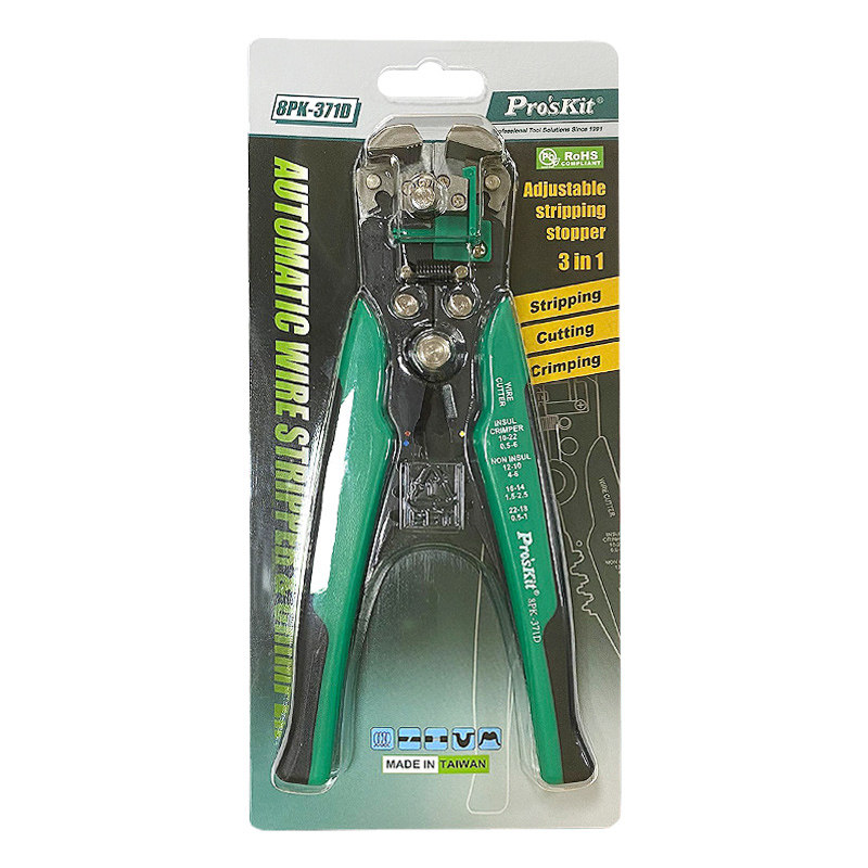台湾宝工8PK-371D多功能电工自动剥线钳是一款专业级电工工具,集剥线、剪切、压接等多功能于一体,适用于0.5–6mm²规格的电线。采用精密合金钢刀口,切割锋利耐用,配合自动调节剥线压力设计,可精准剥离绝缘层而不损伤导体。人体工学防滑手柄提供舒适握感,提升操作安全性与效率。其紧凑结构适合狭小空间作业,广泛应用于家庭装修、电器维修及工业配电等领域。宝工品牌以高品质和可靠性著称,8PK-371D凭借其高效、精准和耐用特性,成为电工师傅和DIY爱好者的理想选择,是日常电气作业中不可或缺的实用工具。