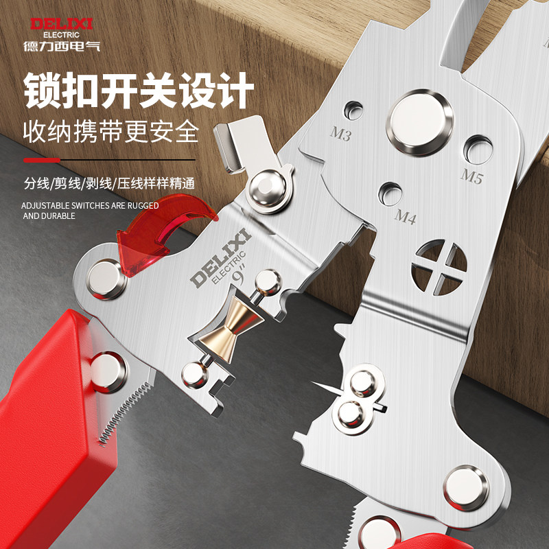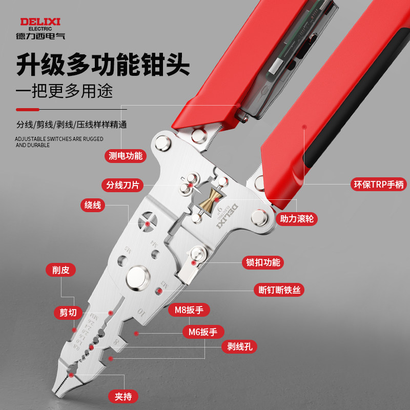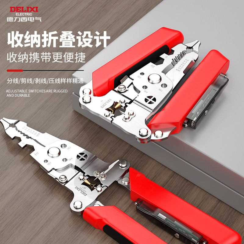 天猫德力西电气折叠剥线钳工业级多功能测电钳分线绕线滑轮电工专用钳