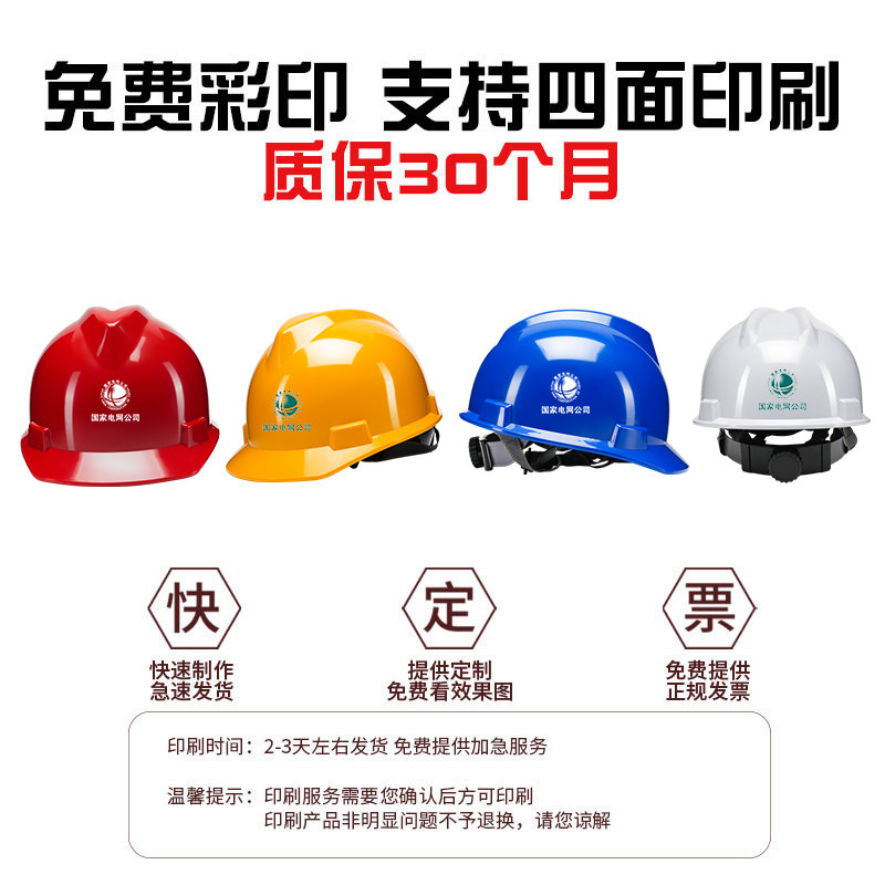 岩扬安全帽工地国标加厚透气电力工程施工领导男白色头盔定制印字