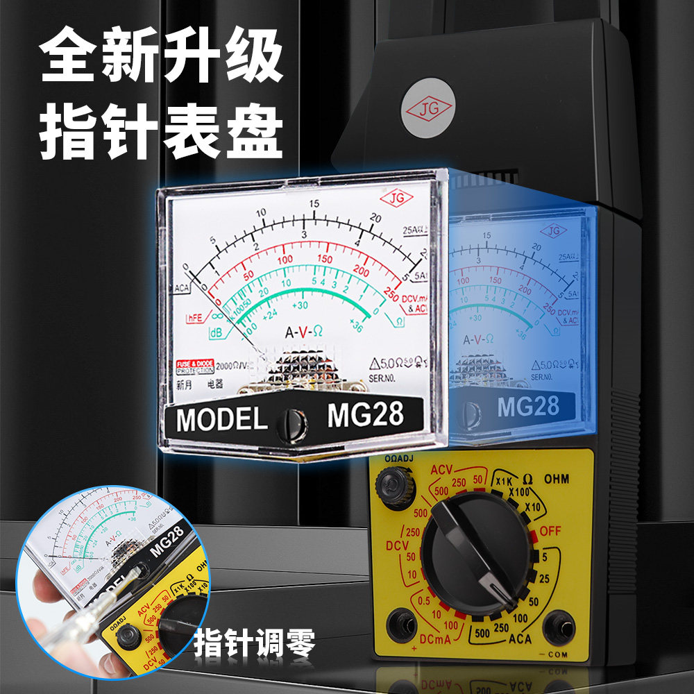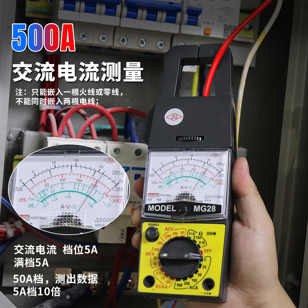 淘宝新月MG28指针式钳形万用表电流电压电阻指针交流电流500A钳型