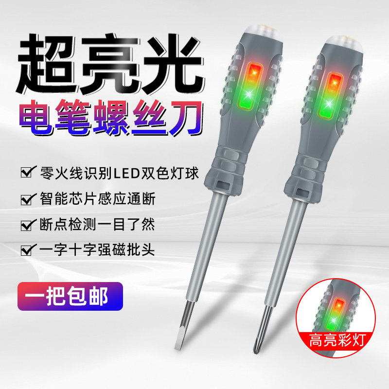淘螺丝刀智能感应测电笔电工专用一字十字彩光验电笔线路检测通断点