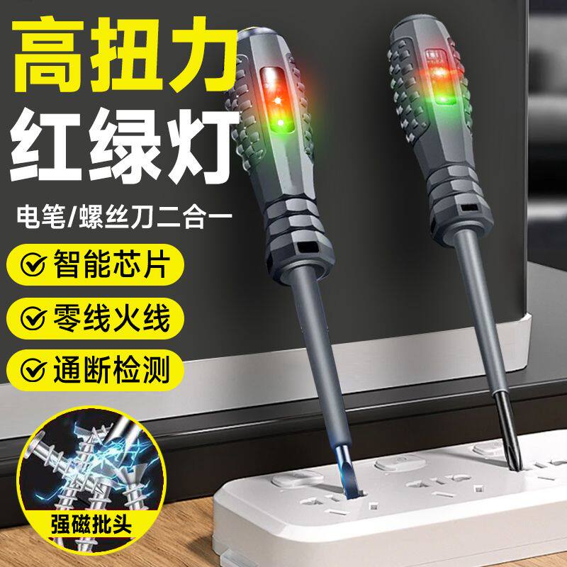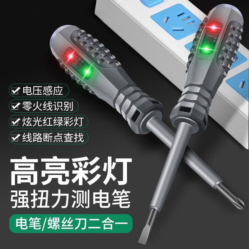 淘螺丝刀智能感应测电笔电工专用一字十字彩光验电笔线路检测通断点