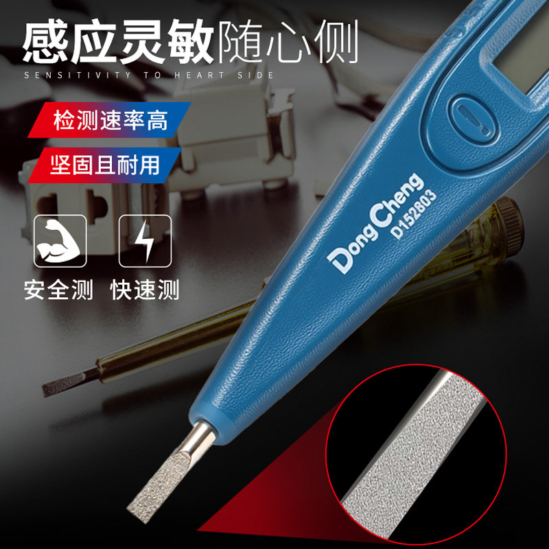 东成测电笔是一款专为电工设计的新型多功能智能感应验电笔,集测电、断线检测、漏电识别于一体。采用高精度数显技术,可清晰显示电压数值,支持非接触式感应检测,安全便捷。具备智能识别功能,能自动区分火线、零线与地线,有效避免误判。高灵敏度探头可精准探测断点位置,适用于家庭电路、工业设备及线路维修。LED背光与蜂鸣提示双重反馈,夜间作业更清晰。外壳采用绝缘材质,符合安全标准,握感舒适,耐用可靠。东成测电笔以智能化、多功能和高安全性,成为现代电工的得力助手,广泛应用于装修、维修及日常用电检测场景。