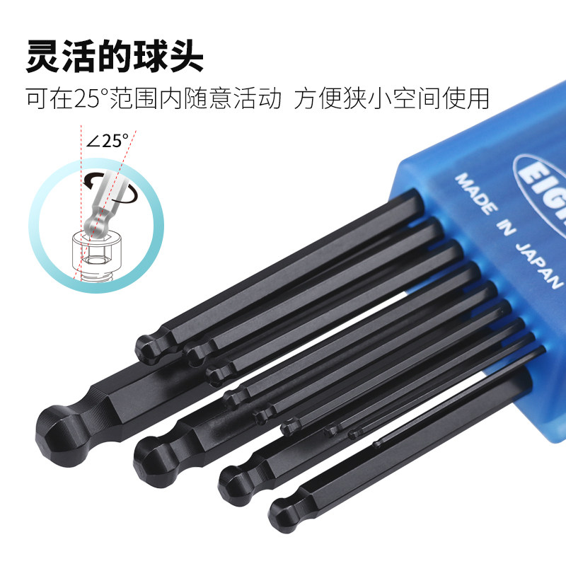 日本EIGHT百利内六角扳手TLS-7S 9支装套装BHS-7 8 9特长球头公制