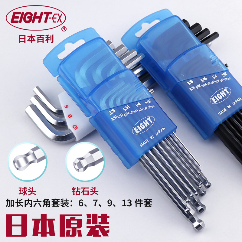 淘日本EIGHT百利内六角扳手TLS-7S 9支装套装BHS-7 8 9特长球头公制