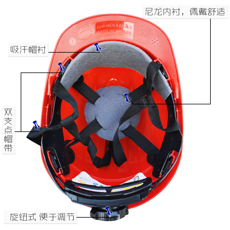 这款ABS材质安全帽专为建筑工地设计,具备优异的抗冲击性和防砸性能,有效保护头部安全。采用高强度工程塑料ABS制成,轻便耐用,具备良好的耐候性和绝缘性,适用于高温、潮湿等复杂施工环境。帽体结构符合国家标准,顶部设有透气孔,增强通风散热,佩戴舒适,减少闷热感。帽衬可调节,适配不同头型,确保稳固贴合。适用于建筑工人、工程监理、施工领导等岗位,是标准劳保防护用品。支持企业LOGO或文字定制印刷,提升团队形象与安全管理水平。整体设计兼顾安全性、舒适性与实用性,是工地安全作业的理想选择。
