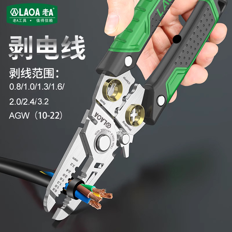 老A剥线钳是一款专为电工设计的多功能专业工具,集剥线、剪线、压线、扒皮及光纤处理于一体,适用于多种线缆操作。其采用高硬度合金钢材质,刀刃锋利耐用,确保精准剥线不伤导体。钳口设计科学,适配不同规格电线与光纤,操作省力高效。手柄符合人体工学,防滑耐磨,长时间使用不易疲劳。无论是家庭布线、通信施工还是工业维修,老A剥线钳都能轻松应对,是电工、通信技术人员不可或缺的得力助手,兼具实用性与可靠性,提升工作效率,保障作业安全。