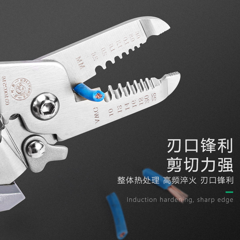 天猫百威狮剥线钳多功能电工压线钳拨线剪线钳电缆剪刀剥扒线钳子