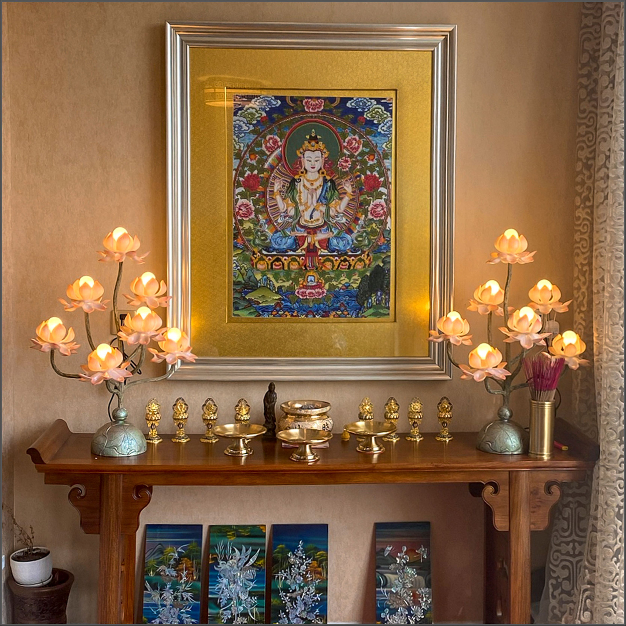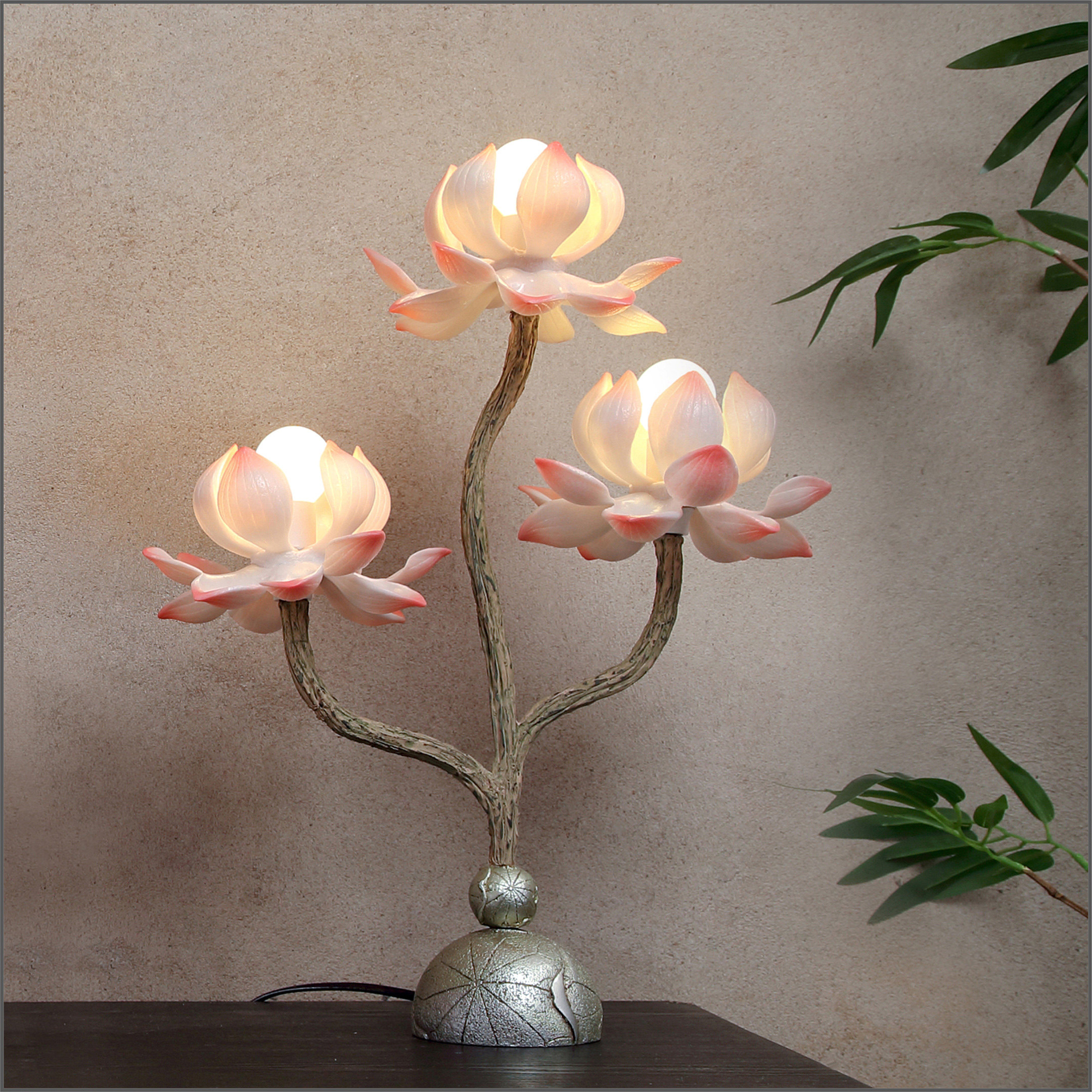 淘宝新中式中国风莲花灯佛前供灯树脂荷花灯长明灯装饰台灯财神观音灯