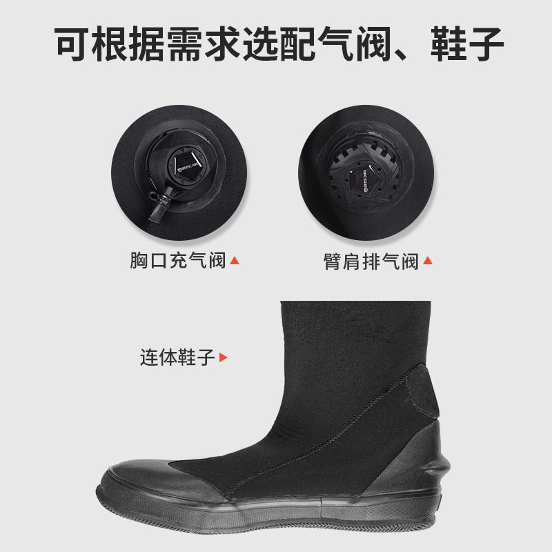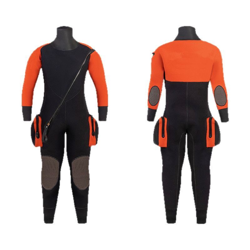 全干式潜水服采用5mm加厚高弹性氯丁橡胶材质,专为深潜、打捞、救援及渔猎等高强度水下作业设计。其全密封结构搭配防水拉链与颈部、手腕密封圈,有效隔绝冷水侵入,确保身体干燥,显著提升保暖性能,适合低温水域长时间作业。外层经特殊耐磨处理,抗撕裂、耐刮擦,适应复杂水下环境。立体剪裁贴合人体工学,活动灵活不束缚,兼顾防护性与舒适性。无论是专业救援、深海探索还是渔猎活动,这款干衣都能提供可靠的防寒保护与卓越的水密性能,是水下作业的理想装备。