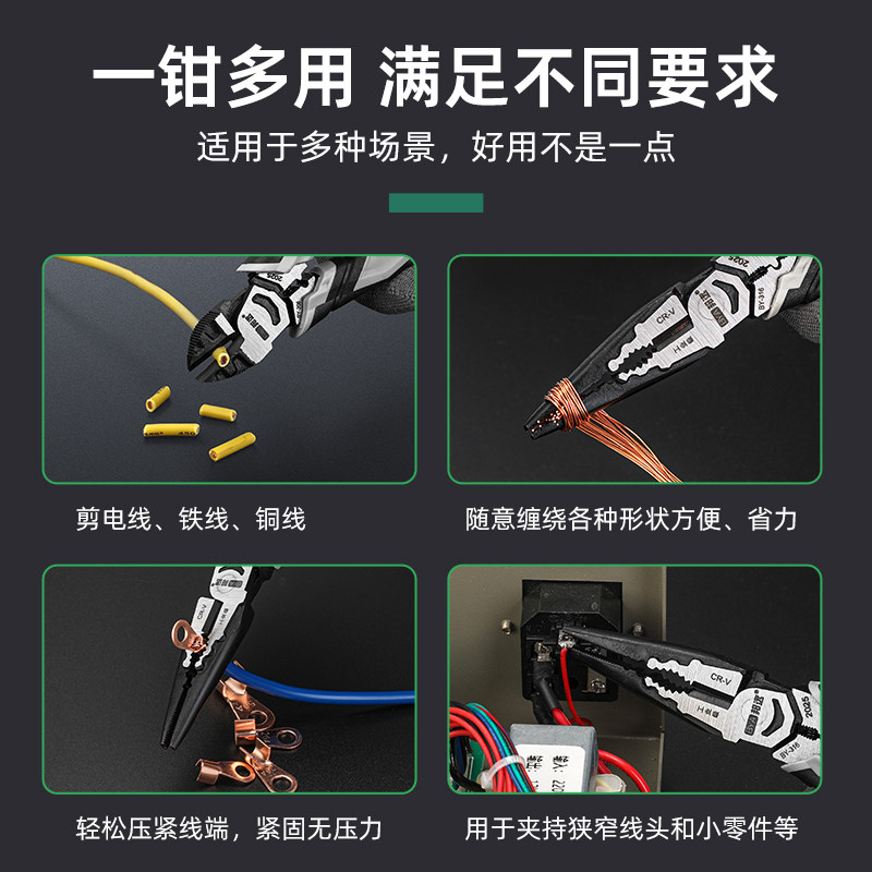 钢丝钳尖嘴斜口钳强劲省力多功能电工家用专用老虎钳五金工具大全