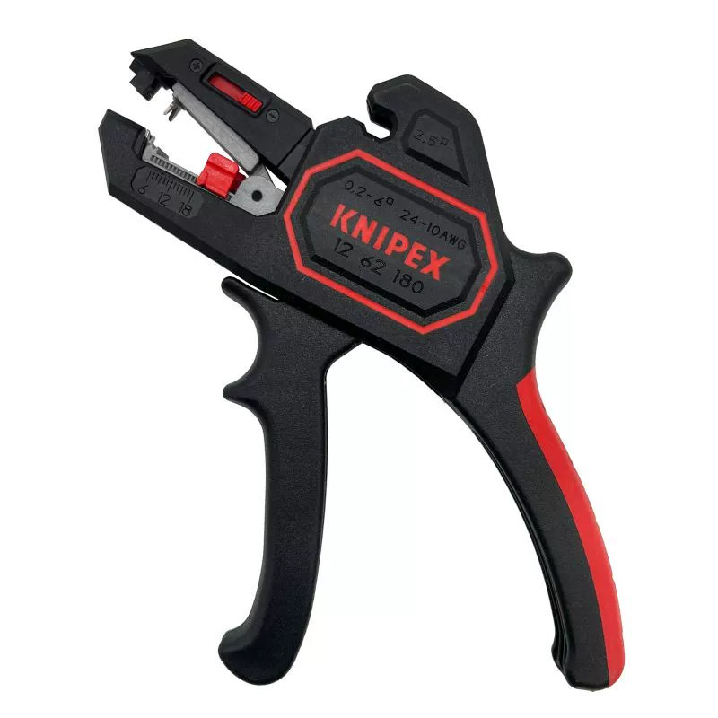 德国原装进口凯尼派克(KNIPEX)自调绝缘导线自动剥线钳1262180,是一款专业级电工工具,适用于直径0.08–6 mm²(AWG 28–10)的单芯及多芯导线。其独特的自调式设计可自动识别线径并精准剥离绝缘层,避免损伤导体,操作高效便捷。钳口采用优质高碳钢精工打造,经特殊热处理,坚固耐用。符合VDE 1000V绝缘标准,确保带电作业安全。人体工学防滑手柄提供舒适握感,长时间使用不易疲劳。整体结构紧凑,适合电工、维修人员及自动化设备安装使用,是追求高品质与高效率的专业之选。