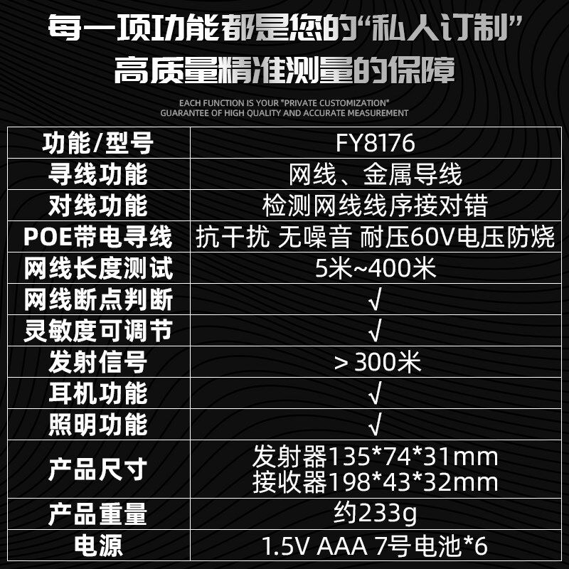 淘宝福仪多功能网络寻线仪网线查线器POE带电巡线仪测线仪长度寻线器