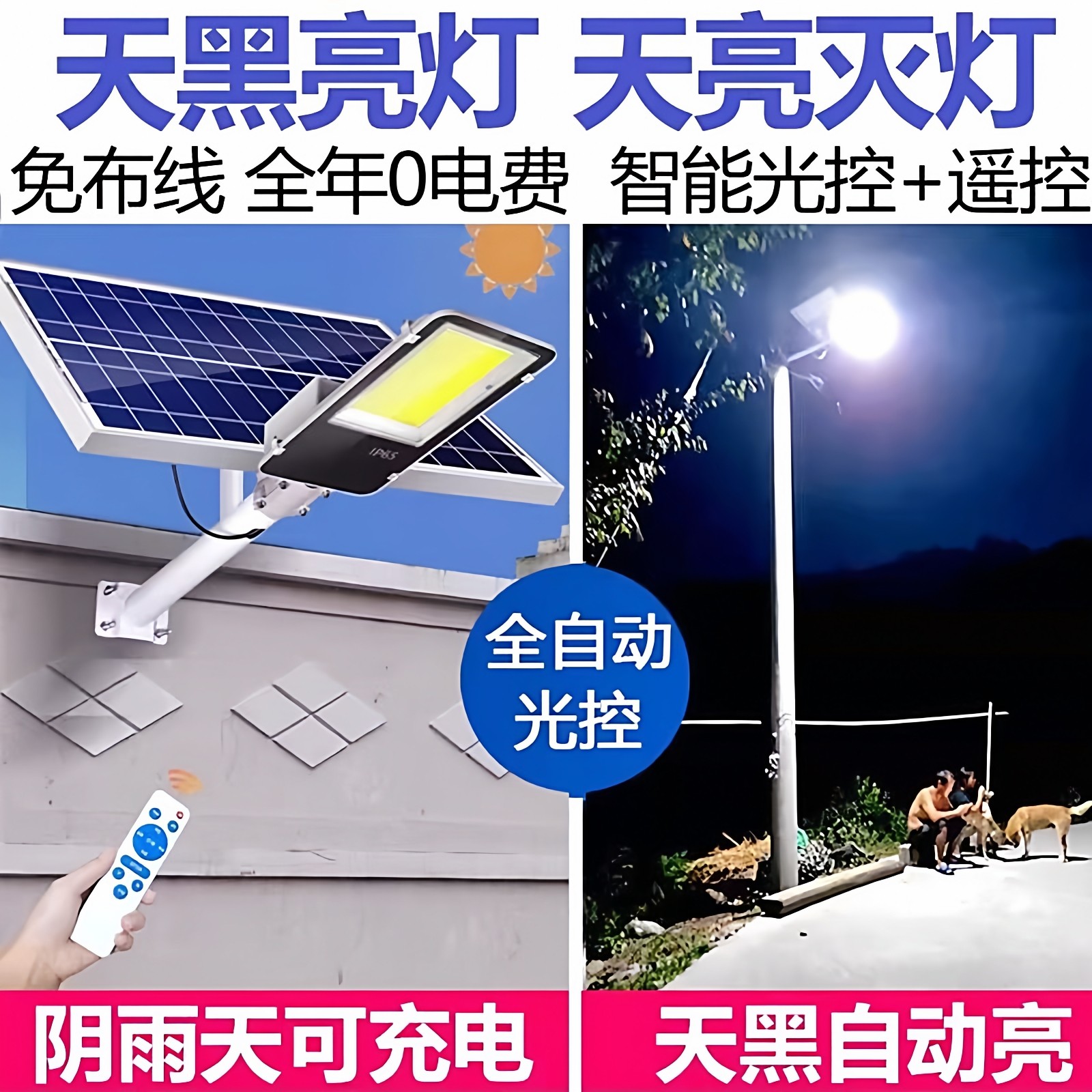 淘太阳能灯 户外庭院灯 家用防水超亮8000W照明LED路灯天黑自动亮