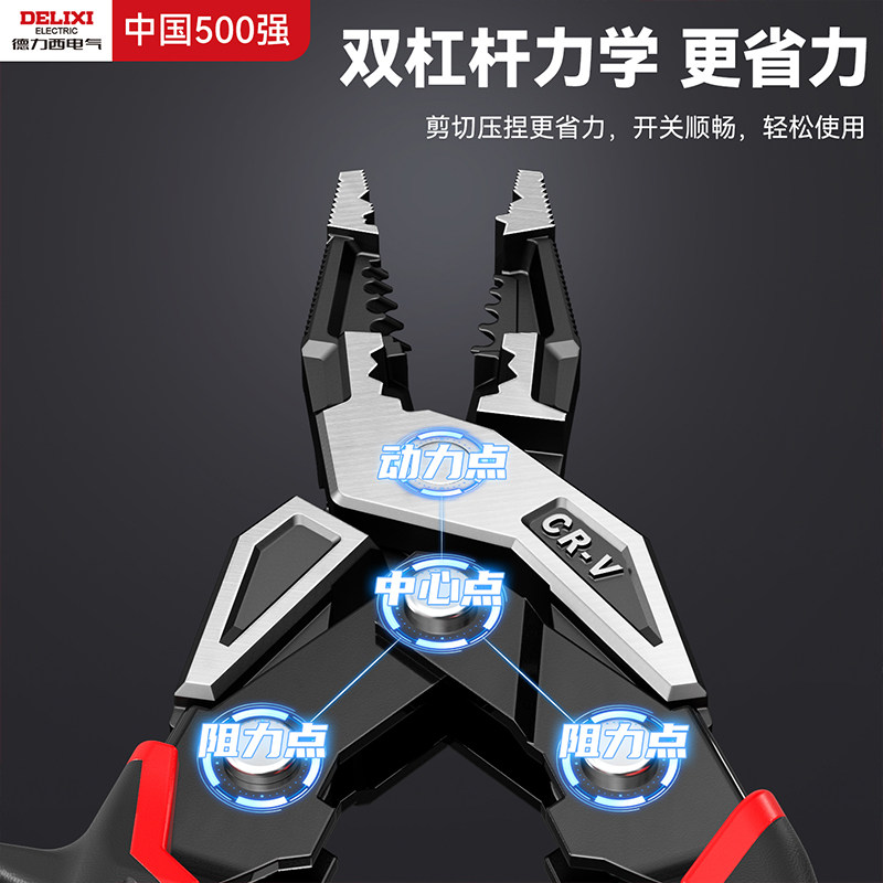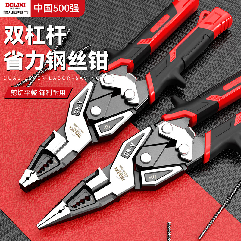 天猫德力西钳子多功能万用省力钢丝钳家用电工专用工业级双杠杆老虎钳