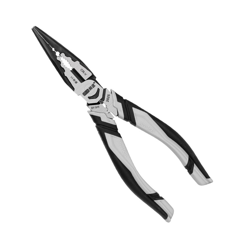 这款工业级多功能钳具套装包含8寸钢丝钳、6寸尖嘴钳、电工斜口钳及尖咀无牙钳,专为电工、机械维修及精密作业设计。采用优质高碳钢锻造,经热处理工艺强化,硬度高、耐磨性强,确保长久耐用。8寸钢丝钳可轻松剪切中硬钢丝;6寸尖嘴钳适合狭小空间精细操作;斜口钳切口平整,适用于剪断电线及细小金属件;无牙尖咀钳防滑不伤工件表面,适合夹持精密零件。手柄采用防滑绝缘设计,握感舒适且安全。整体结构紧凑、功能全面,是专业技工和DIY爱好者的理想工具选择,广泛应用于电力、电子、汽修等领域。