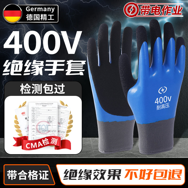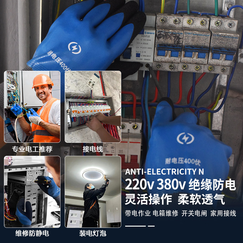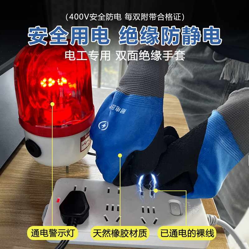 天400v绝缘手套380v防电低压220V维修电工专用橡胶超薄灵活防滑耐磨