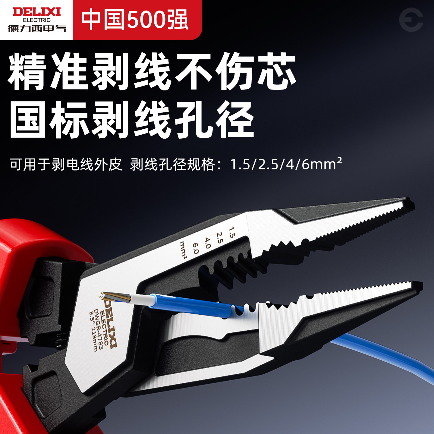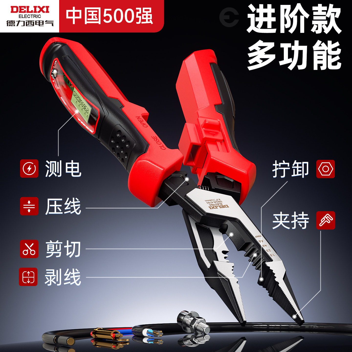 天猫德力西剥线钳多功能电工专用钳子新款电笔万用电工钳工业级尖嘴钳