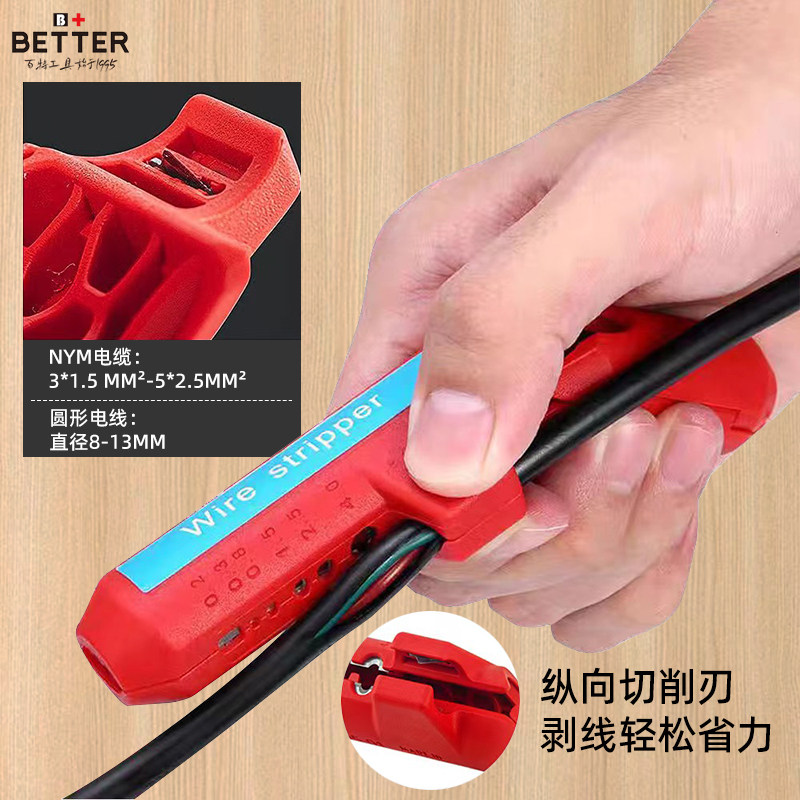 剥线钳便携式电工专用快速去皮工具,专为高效处理废旧电线电缆设计。采用优质高碳钢材质,刀口锋利耐用,精准调节剥线深度,适用于多种线径(0.5–6mm²),轻松剥离单芯、多芯电线外皮而不损伤导体。手持式设计轻巧便携,操作省力,单手即可完成剥线任务,大幅提升电工工作效率。防滑手柄确保使用安全,适用于家庭维修、电器安装、配电作业等场景。无论是新线施工还是废旧线缆回收,这款剥线神器都能快速、干净地完成去皮作业,是专业电工和DIY爱好者的理想工具,兼具实用性与耐用性,让剥线更轻松高效。
