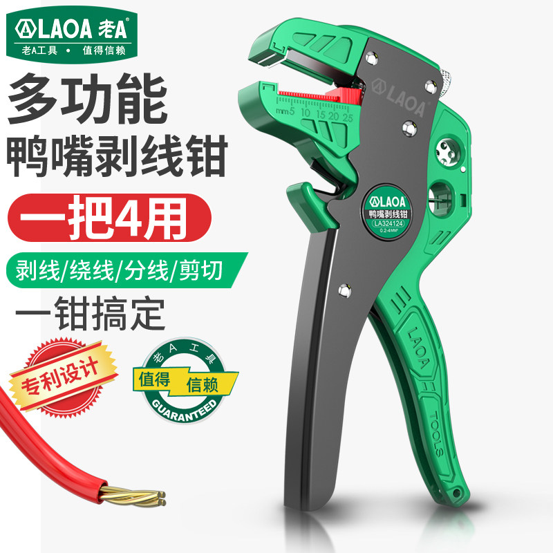 淘宝老A多功能鸭嘴剥线钳4合1专业级0.2-4mm剥线器电工钳鸭嘴钳1把4用