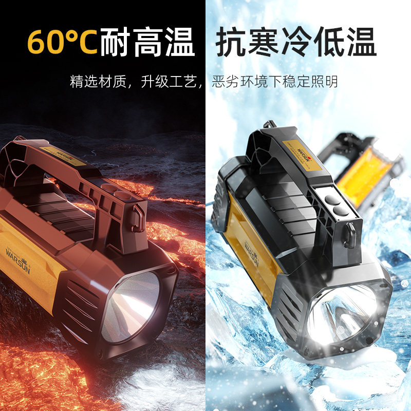 沃尔森d6000手电筒强光充电式户外超亮手提灯多功能家用探照灯