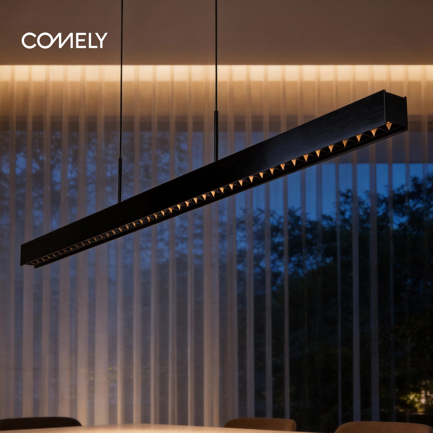 新特丽护眼餐厅吊灯,融合意式极简美学与现代智能科技,专为现代家居饭厅、吧台及艺术空间打造。采用一字长条设计,线条流畅,简约而不失格调,完美契合开放式厨房与餐桌布局。搭载专业护眼光源,无频闪、低蓝光,营造舒适温馨的用餐氛围。支持智能调光调色,可通过APP或语音控制,随心切换明亮聚餐或柔和浪漫模式。高品质铝合金材质,搭配精工磨砂灯罩,耐用且显质感。既是照明主灯,亦是空间艺术点缀,为家居生活注入优雅与科技感,让每一餐都成为美好体验。