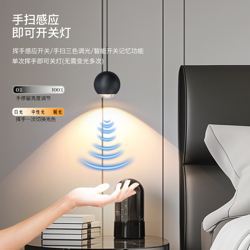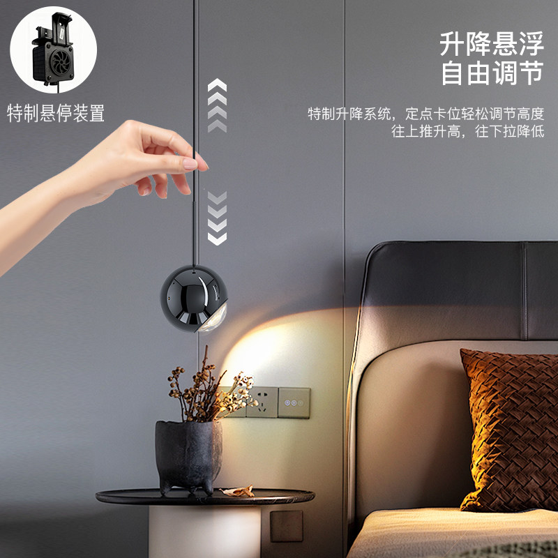 淘宝卧室床头吊灯高级感轻奢智能感应可升降伸缩吊线灯新款创意床头灯