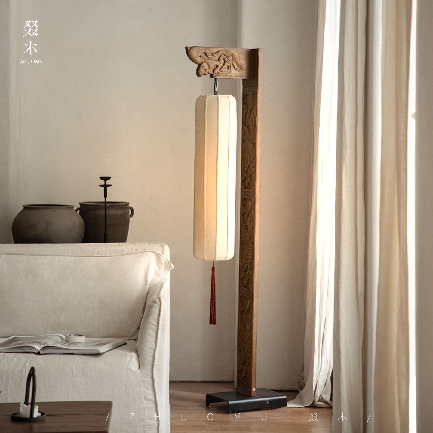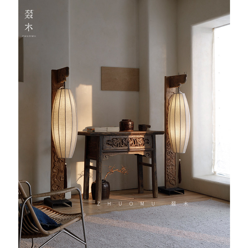 淘宝叕木/风化木创意 | 雕花拆房木落地灯实木装饰灯侘寂风民宿饰品
