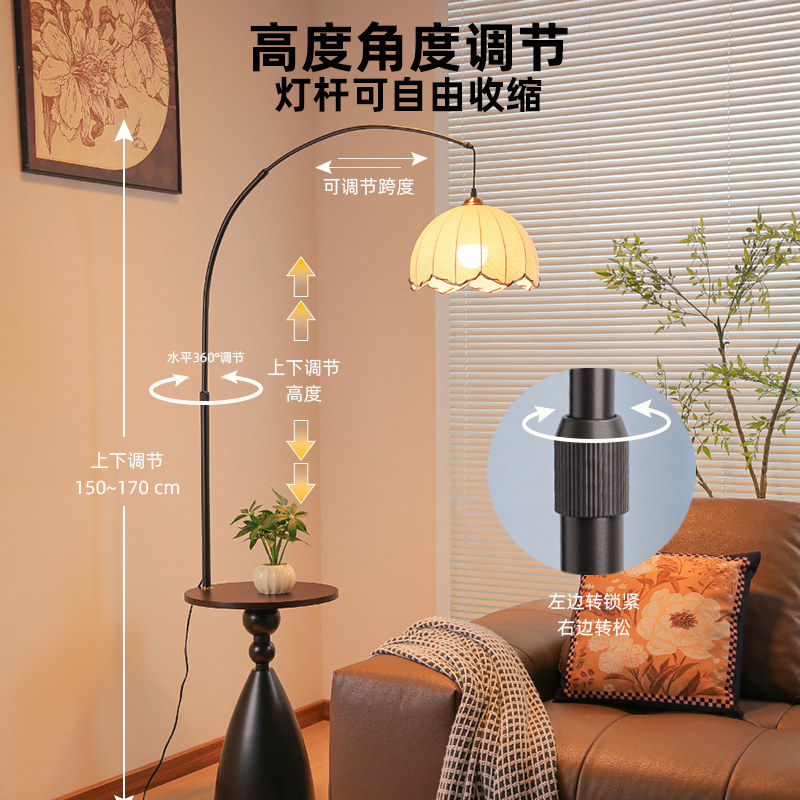 天猫法式中古置物架一体钓鱼灯落地灯客厅沙发边氛围装饰复古卧室台灯