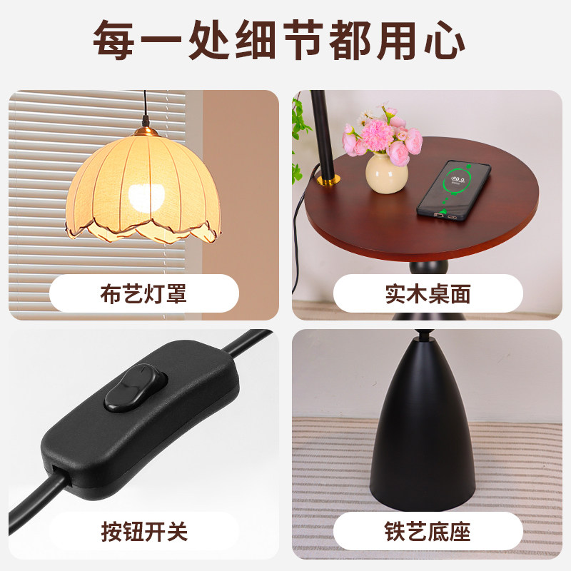 宋式美学落地灯客厅沙发旁边中式复古置物架一体卧室氛围装饰台灯