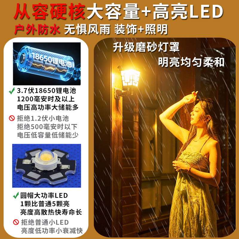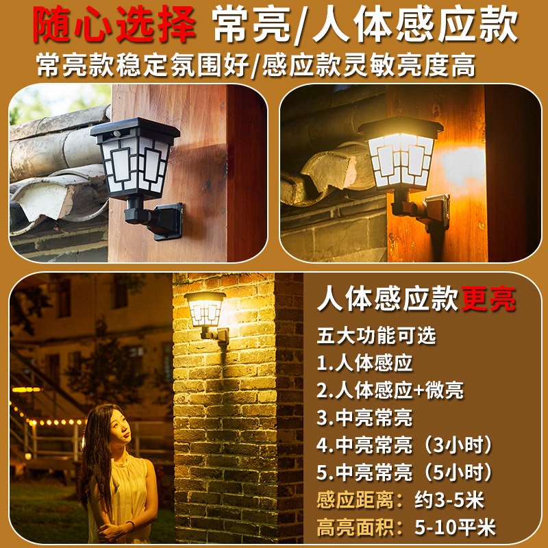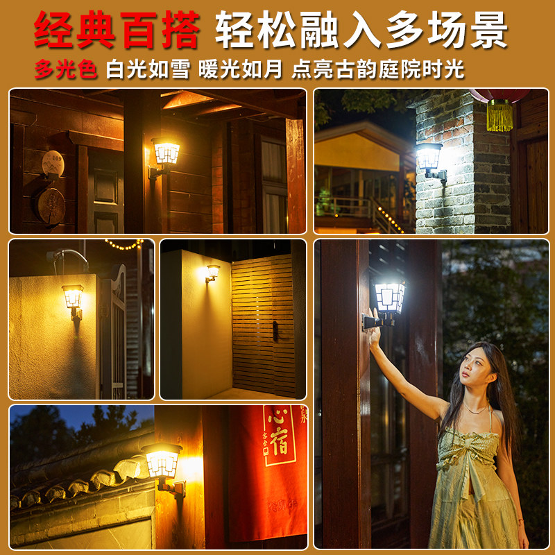 天猫中式太阳能户外壁灯庭院花园阳台别墅室外门口照明装饰氛围围墙灯