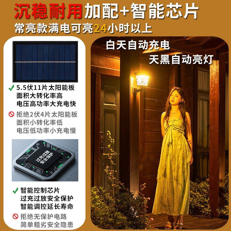 天太阳能户外壁灯庭院花园阳台别墅家用小院装饰室外感应围墙照明灯