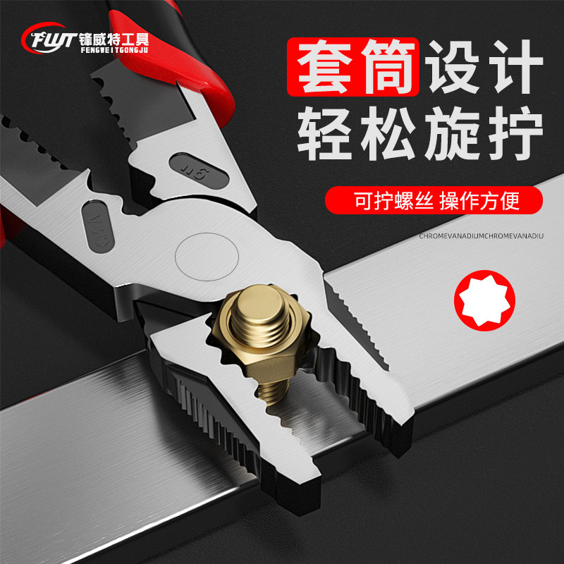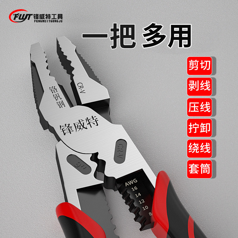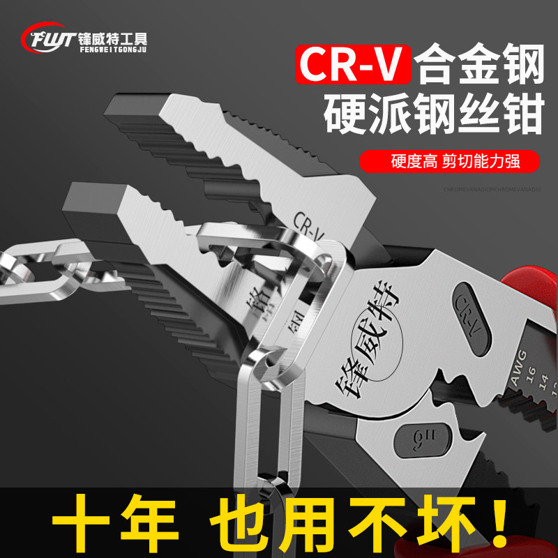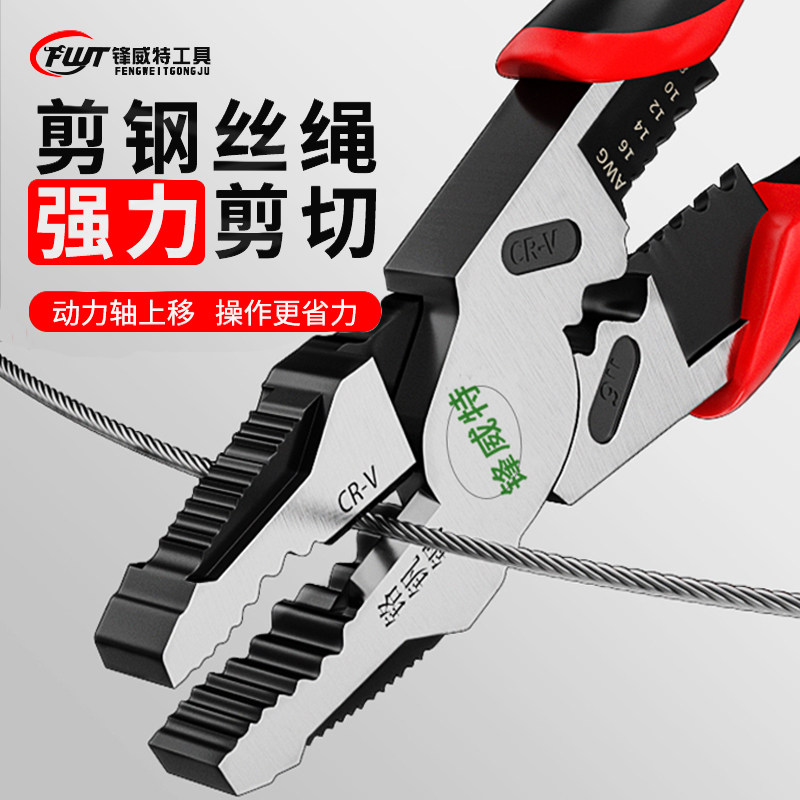 天猫德式工业级crv钢丝钳快速老虎钳电工多功能剥线压线钳子偏心省力