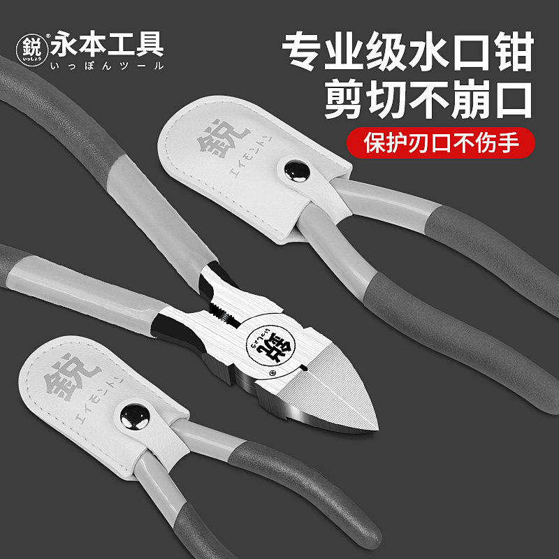 淘宝日本永本水口钳子铬钒钢8寸偏口钳高达模型剪5寸3D电子剪钳斜口钳