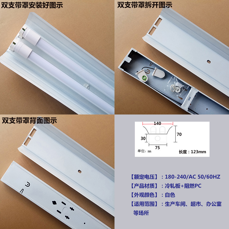 淘宝t8灯管支架全套led双管灯架带罩0.9米超亮日光灯40w应急1.2米0.6m