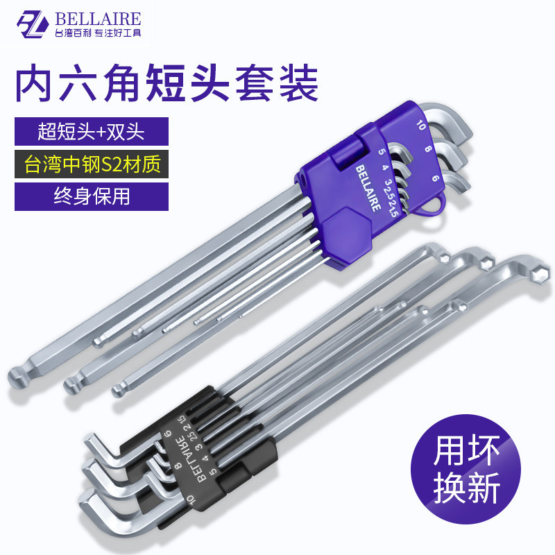 淘宝台湾百利内六角扳手彩色套装头内6角螺丝刀公制英制六边型螺丝刀